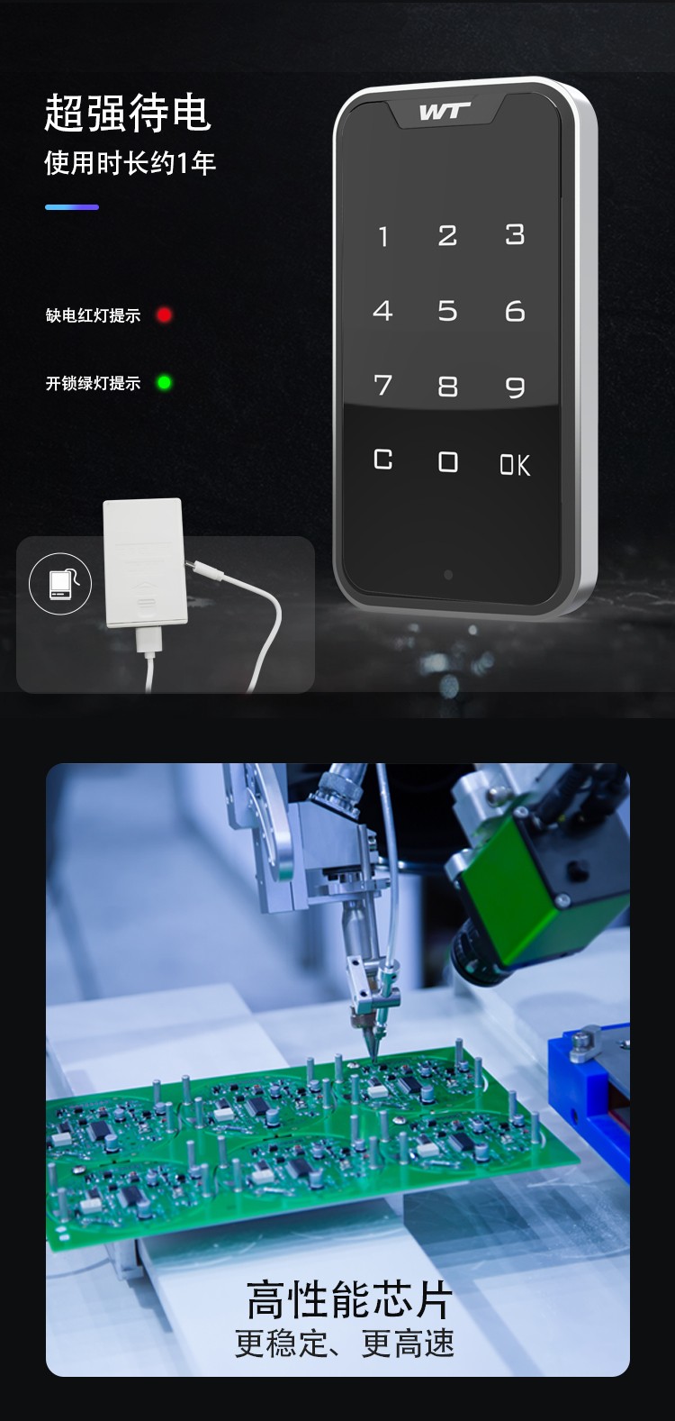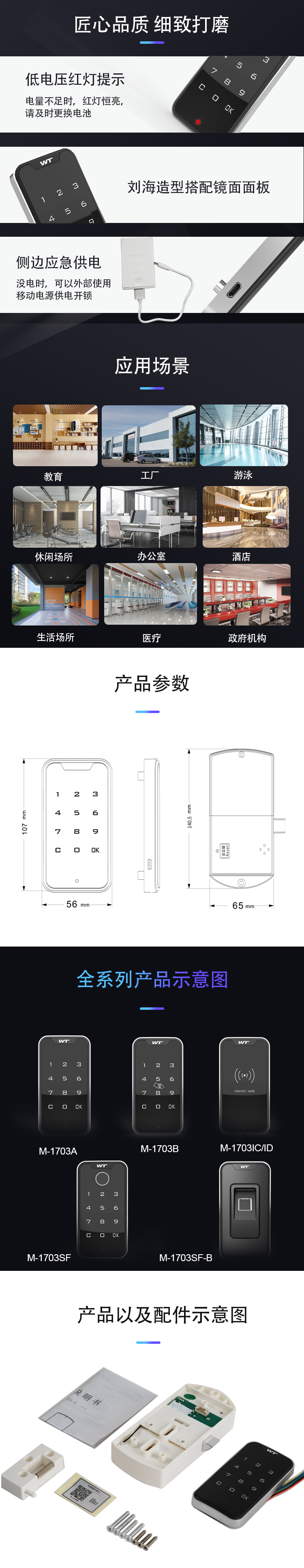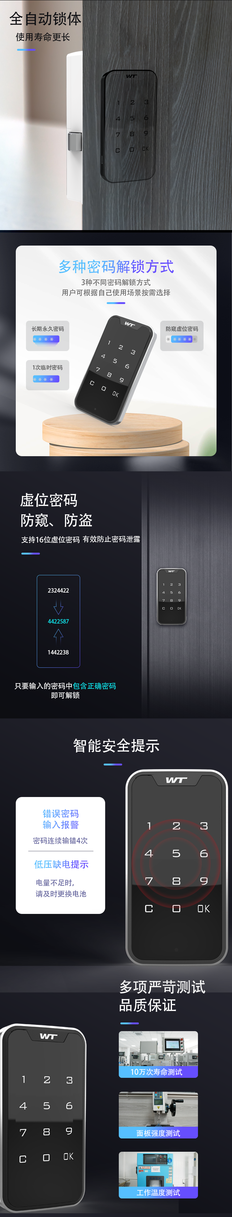 桑拿锁WT-M-1703-A电子密码锁办公柜12键触摸式按键柜门锁指纹锁
